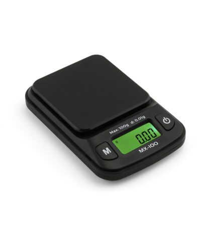 € 17,95High-precision 100g x 0.01g digital pocket scale with green backlit LCD, tare function and protective cover tray. Compact, accurate and easy to calibrate.